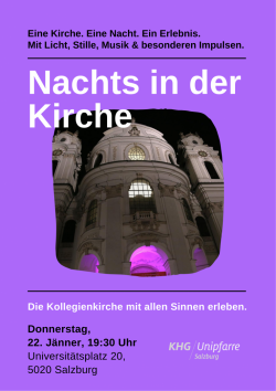Wir laden euch zu einer Führung der besonderen Art ein, bei der ihr mit allen Sinnen den Raum unserer "KoKi" erleben könnt. Danach wird für jene, die sich noch gerne austauschen möchten, eine Agape im Imaculada mit offenem Ende angeboten.